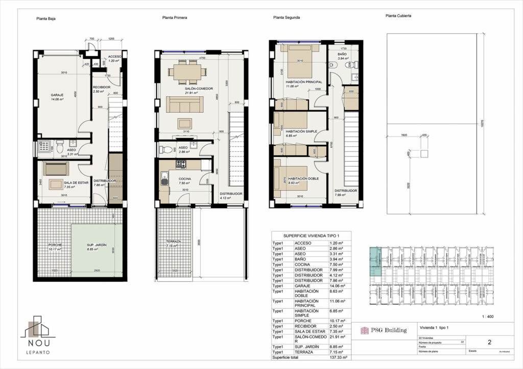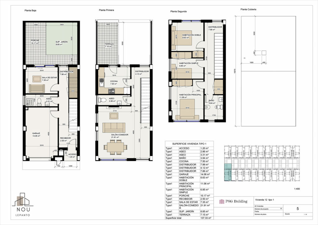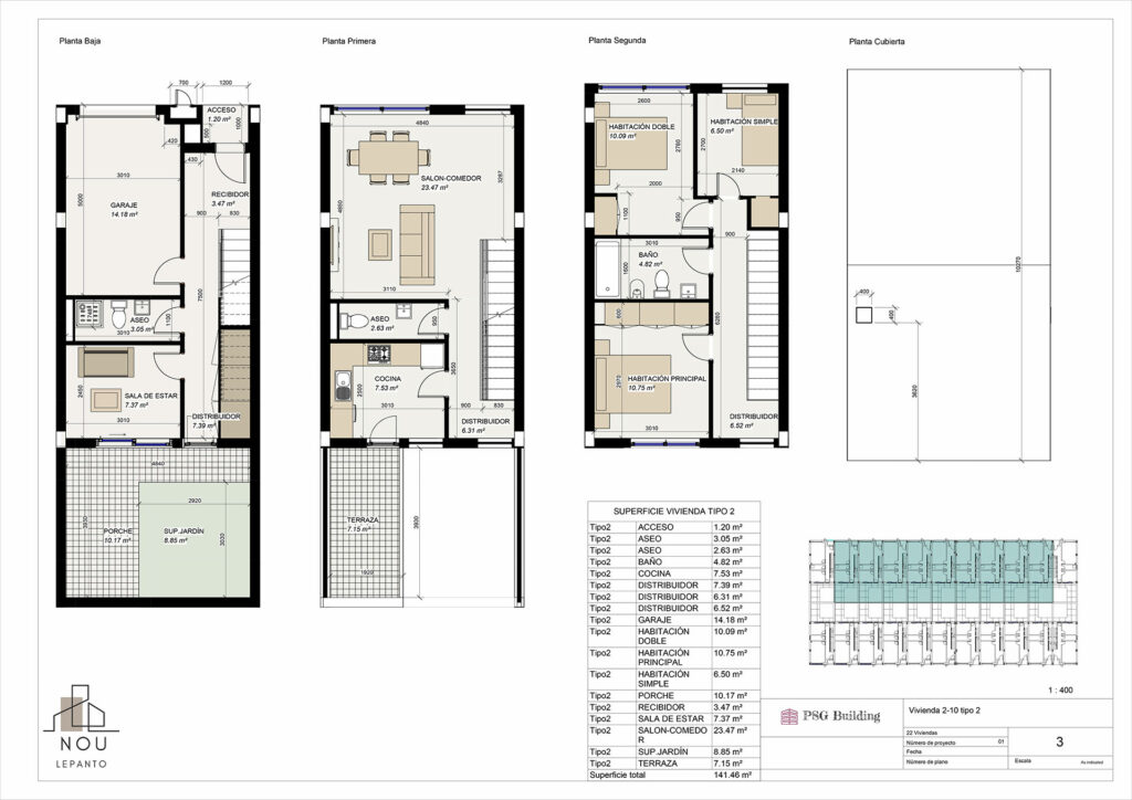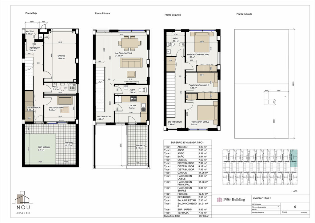 Nou Lepanto es un residencial de 22 viviendas unifamiliares de 4 dormitorios y 3 baños,